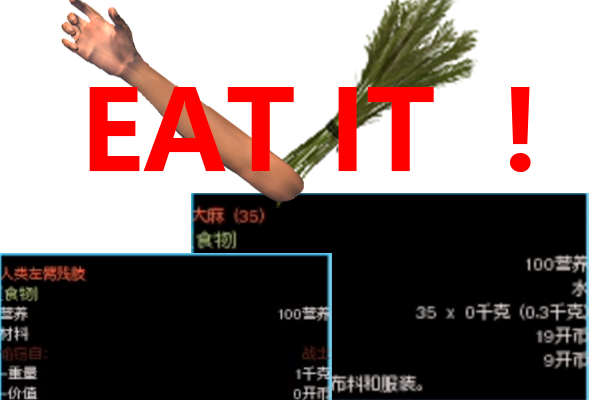 MOD概要 このMODは、ゲーム内のアイテムである「切断された四肢(断肢)」と「大麻およびその調合物/製剤」を食料として食べられるようにします。 このMODで何が変わるか – プレイヤーキャラクター(およびゲーム内のAI)が、切断された四肢を通常の食料として消費できるようになります。 – プレイヤーキャラクター(およびゲーム内のAI)が、大麻およびその調合物/