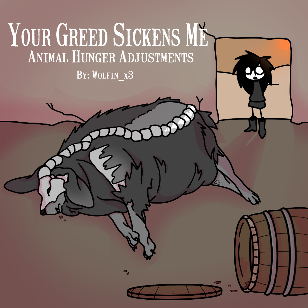 うちの子犬ちゃんが、1.5人分のグリーンランダーより多く食べるのはなんで? うちの赤ちゃんガルーが、6人分のハイブより多く食べるのはなんで? そりゃあ、あいつらが大食いだからだよ。 このMODは彼らの空腹を抑え、もっと… 現実的にします。これで、食料源が大量にあるのに、なぜか全部食い尽くして、ペットのビークシングが毎ゲーム餓死するなんてことはなくなります。あいつら一日で巨大なリヴァイアサ